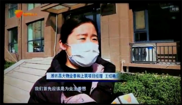 昌大物業(yè)的防疫防控措施受到了新聞媒體的特別關(guān)注,在濰坊電視臺《直播濰坊》欄目中,對昌大物業(yè)在疫情期間所管轄社區(qū)的防疫防控做法進行了專題報道,并收獲了社會和業(yè)主的一致好評。