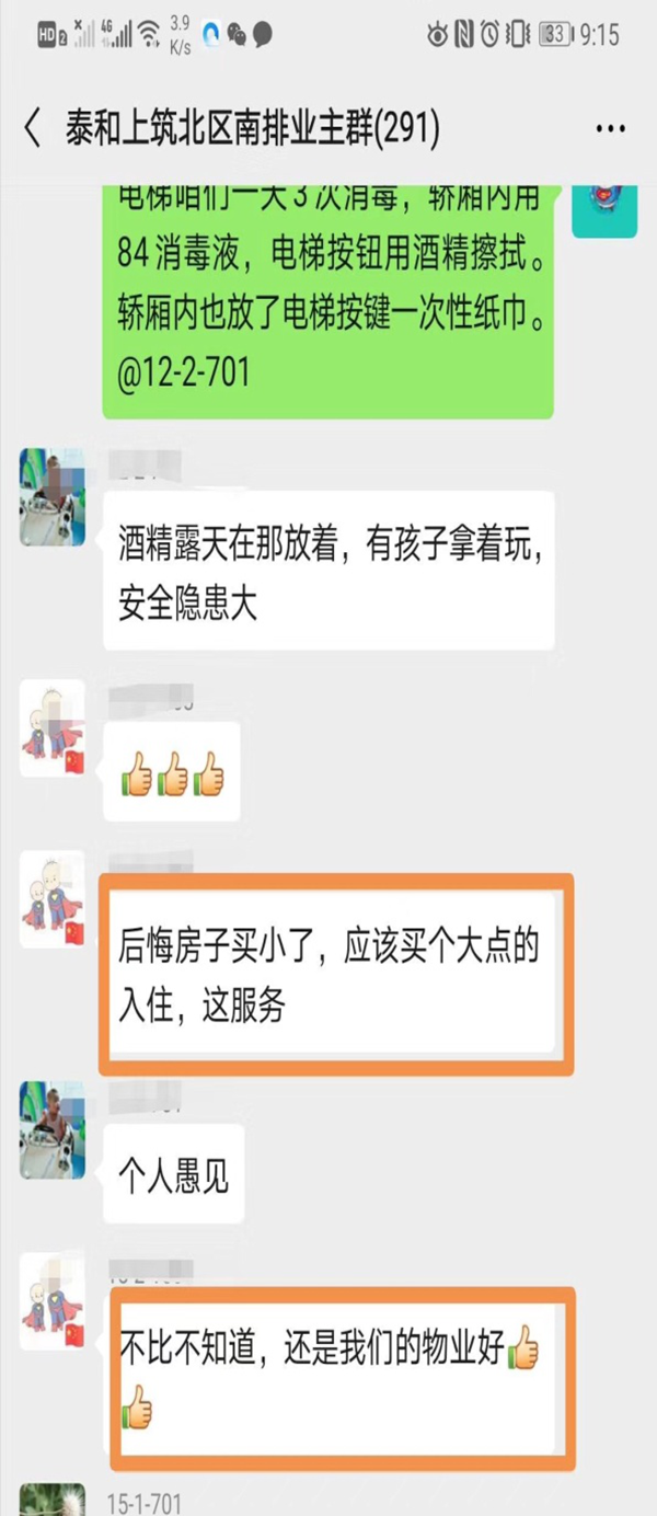 防疫期間,各物業(yè)項目部安排社區(qū)內(nèi)每日不低于兩次消殺,消殺范圍包括:道閘、電梯、單元門、游樂設(shè)施、小區(qū)出入口、空中地面、綠化帶及生活垃圾桶等公共區(qū)域,對公共電梯這一重點區(qū)域,每天每兩小時一次對電梯轎廂按鈕、轎廂扶手用75%酒精進行擦拭消毒,電梯轎廂地面每日1次用消毒液噴灑消毒,電梯樓層按鈕每日2次用75%酒精進行擦拭消毒,。為避免口罩等防疫物資的二次傳播,園區(qū)內(nèi)還設(shè)置了專門的廢棄口罩專用垃圾桶。為了將病毒攔截在外,物業(yè)安管員24小時值守,對小區(qū)人員和車輛嚴控進出,對外來人員全面排查,并制作了小區(qū)出入證發(fā)放給小區(qū)業(yè)主,小區(qū)住戶必須憑證進出小區(qū)。
