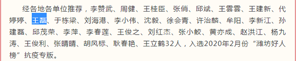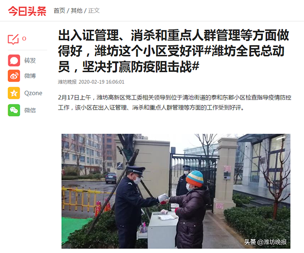 新冠肺炎疫情發(fā)生以來,全市各行各業(yè)涌現(xiàn)出許多感人至深的“好人”事跡,為凝聚抗疫信心,由濰坊市文明辦主辦了“濰坊好人榜”抗疫好人選拔活動,昌大物業(yè)項目經(jīng)理王磊在帶領(lǐng)團隊防疫抗疫過程中表現(xiàn)突出,入選了2020年2月份“濰坊好人榜”。其管轄小區(qū)在區(qū)黨工委相關(guān)領(lǐng)導(dǎo)檢查過程中,因小區(qū)在出入證管理、消殺和重點人群管理等方面的工作受到好評,其做法同時被街道物業(yè)辦在各物業(yè)項目部推廣學(xué)習(xí),并在《濰坊晚報》《今日頭條》等新媒體上進行了宣傳報道。