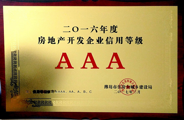 泰和置業(yè)有限公司獲房地產(chǎn)開發(fā)企業(yè)信用等級第一名