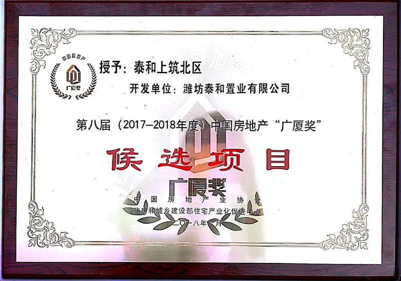 喜報|泰和上筑北區(qū)項目被授予第九屆 (2019-2020年度)“廣廈獎”
