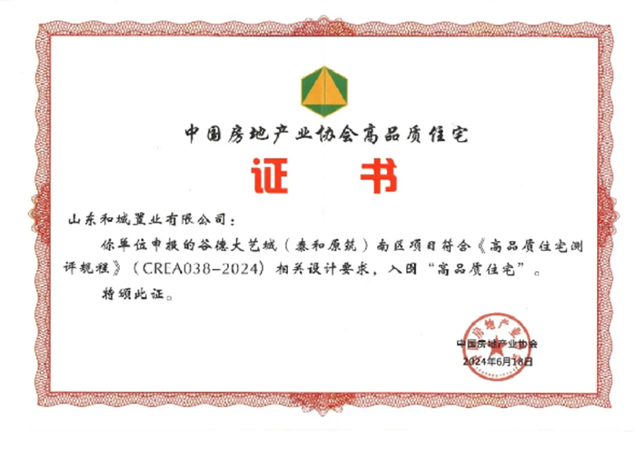 “泰和原筑”項目入圍全國首批高品質(zhì)住宅項目