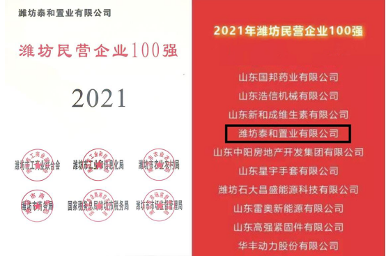 泰和置業(yè)再獲“濰坊民營企業(yè)100強(qiáng)”榮譽(yù)稱號(hào)