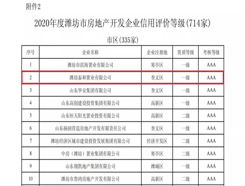 泰和置業(yè)獲評(píng)2020年度全市房地產(chǎn)開(kāi)發(fā)企業(yè) AAA級(jí)信用企業(yè)