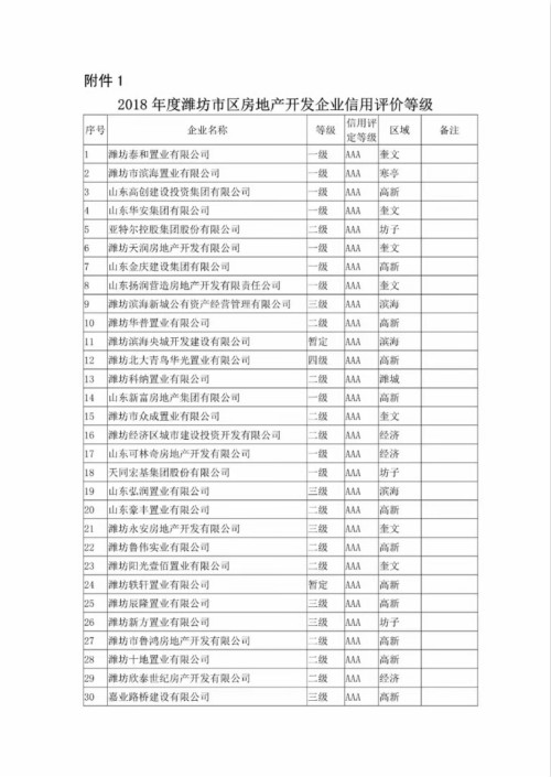 濰坊市區(qū)房地產(chǎn)開(kāi)發(fā)企業(yè)信用等級(jí)每年度核定一次,全市近400家開(kāi)發(fā)企業(yè)參與信用等級(jí)“排位”。由濰坊市住房和城鄉(xiāng)建設(shè)局全面考量房地產(chǎn)開(kāi)發(fā)企業(yè)在開(kāi)發(fā)能力、信貸、納稅、合同履約、產(chǎn)品質(zhì)量、社會(huì)責(zé)任等方面的情況,對(duì)企業(yè)信用等級(jí)作出的客觀公正評(píng)價(jià)。根據(jù)《濰坊市房地產(chǎn)開(kāi)發(fā)企業(yè)信用等級(jí)評(píng)價(jià)管理辦法》,信用等級(jí)評(píng)定為AAA級(jí)的優(yōu)秀企業(yè)在預(yù)售資金監(jiān)管、勞務(wù)工資保證金等方面將享受相關(guān)優(yōu)惠政策。