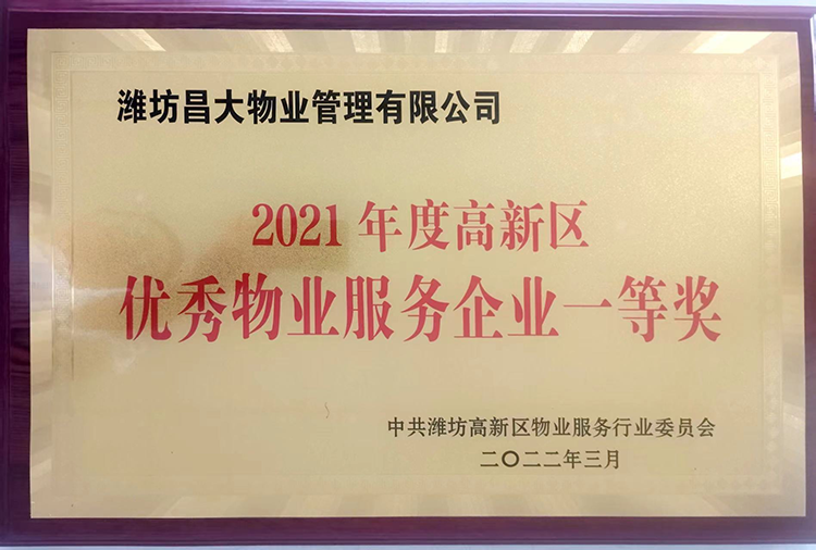 1.昌大物業(yè)獲“2021年度高新區(qū)優(yōu)秀物業(yè)服務(wù)企業(yè)一等獎(jiǎng)”