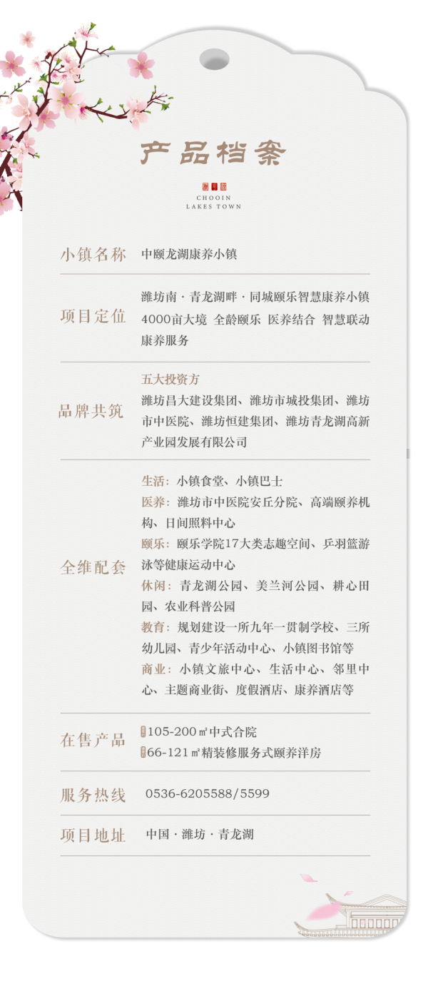 本項目備案名:“中頤龍湖康養(yǎng)小鎮(zhèn)”。開發(fā)商:中頤健康城置業(yè)投資(安丘)有限公司。本宣傳資料為要約邀請,不作為要約或承諾;資料中相關內(nèi)容不排除因政府相關規(guī)劃、規(guī)定及開發(fā)商未能控制的原因而發(fā)生變化;且對項目周邊環(huán)境、交通、教育商業(yè)及其他配套設施的介紹,旨在提供相關信息,不意味著中頤健康城置業(yè)投資(安丘)有限公司對此作出了承諾,買賣雙方的權利義務以雙方簽訂的《商品房買賣合同》及附件為準;中頤健康城置業(yè)投資(安丘)有限公司保留對宣傳資料修改的權利。資料所發(fā)布的內(nèi)容為2025年2月前的信息,敬請留意最新資料。本資料相關圖片來源網(wǎng)絡,如有侵權,請聯(lián)系刪除!