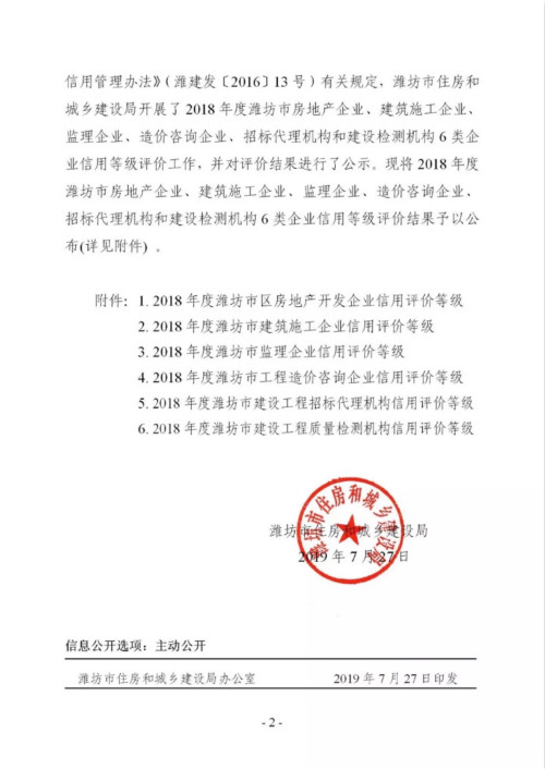 2019年7月27日,泰和置業(yè)榮獲濰坊市房地產(chǎn)開(kāi)發(fā)企業(yè)信用等級(jí)AAA級(jí)評(píng)價(jià)第一名,這已是公司連續(xù)第三年蟬聯(lián)濰坊市房地產(chǎn)開(kāi)發(fā)企業(yè)AAA信用等級(jí)評(píng)價(jià)排行榜第一名。